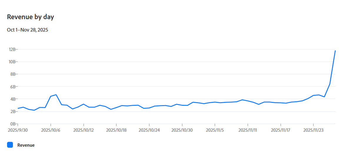 "黑色星期五”線上消費創下118億美元紀錄:Adobe表示美國消費者在黑色星期五當天在線上消費了118億美元,高於去年108億美元,並且今年假期消費總額達2534億美元,高於去年2411億美元;Salesforce統計今年黑色星期五全球消費額790億美元,其中美國消費額180億美元,分別較去年同期增長6%和3%,但這種成長並非源自消費者需求增加,而是反映價格上漲 — 平均價格上漲7%,而訂單量下降1%。