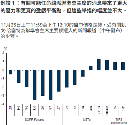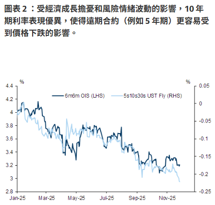 前端利率定價並不過於樂觀:上週略顯疲軟的經濟數據進一步推動市場預期12月降息,但Fed成員之間的分歧仍將是降息的重要限制因素。 Kevin Hassett週末自爆自己會當選Fed Chair,近月殖利率反而是小幅上漲,這可能反映了市場對FOMC分裂會議的謹慎預期。