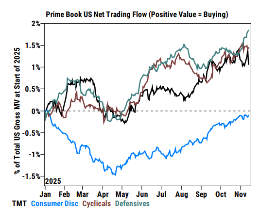 Defensive Bid:機構資金連續兩周淨買超醫療保健版塊,其中也包含生物科技和藥廠。