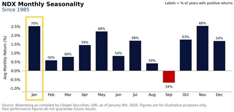 指數季節性:根據過去75年來的資料,標普500季節性在一月會延續12月的漲幅。