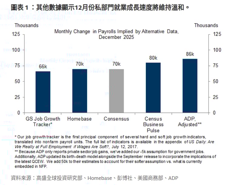 非農前瞻:高盛估計12月非農就業人數成長70k,市場預期中位數70k、預估失業率4.5%,市場預期4.5%。聯邦政府減少的人力會由零售業補足。