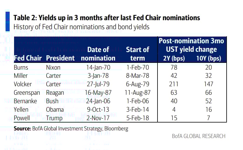 美聯儲主席: 川普對外宣佈它已選定下任美聯儲主席人選,根據以往的慣例,在美聯儲主席確認之後美債殖利率都會上升。