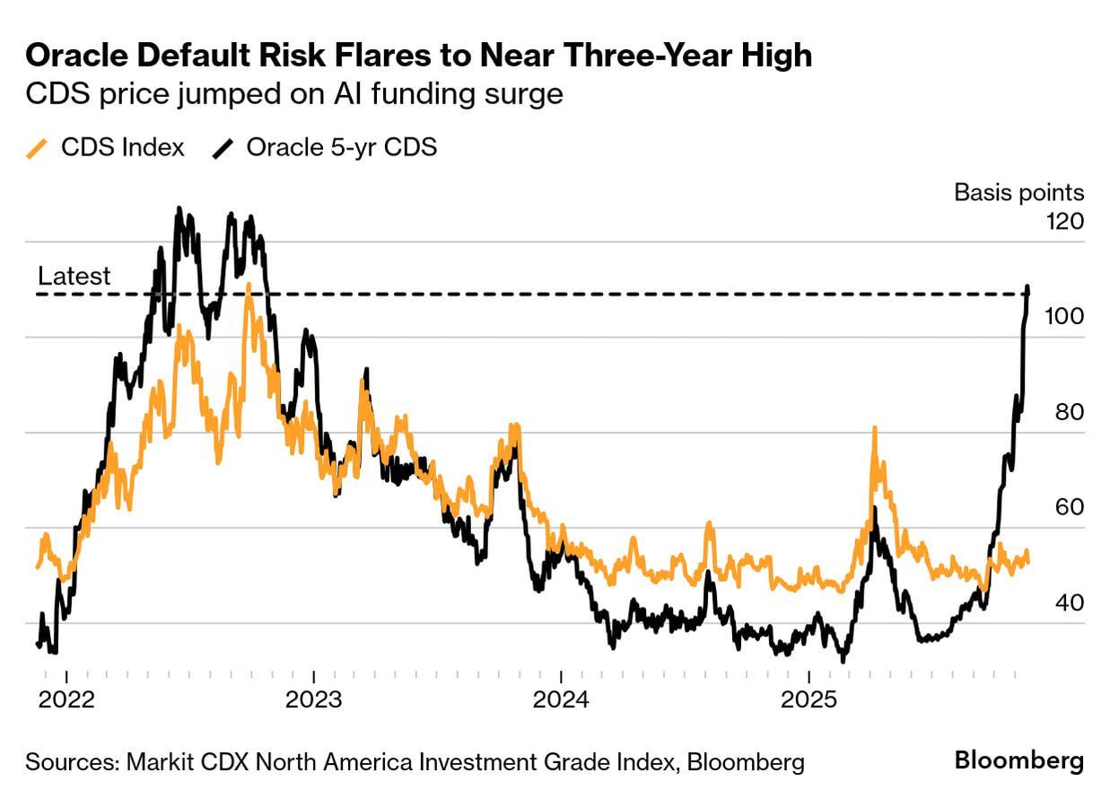 AI Fear:市場透過各種方式表達對AI Bubble的擔憂,CDS(Credit Default Swap)就是其中一種方式,Oracle、各家Neo Cloud的CDS不斷走高。 然而,CDS市場體量太小,買賣價差也很大,參與者又不多,看股價反應比較直接。